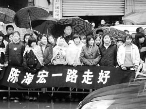為陳海宏送行的群眾?!。ㄖ性粩?攝)