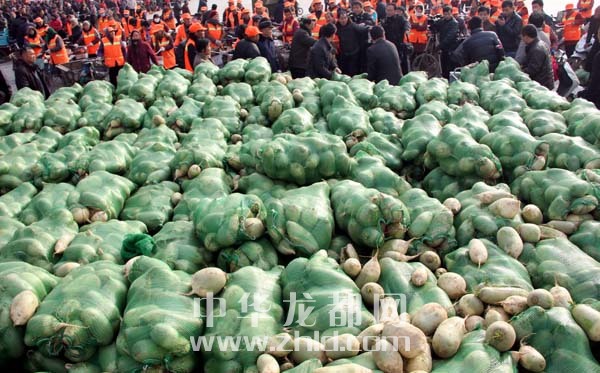 當(dāng)天上午,淮陽(yáng)縣太昊陵廣場(chǎng)人頭攢動(dòng),1000余名貧困家庭代表早早地來(lái)到現(xiàn)場(chǎng)等候。9時(shí)許,“愛心蘿卜”開始免費(fèi)發(fā)放。僅一上午時(shí)間,20萬(wàn)斤蘿卜就被認(rèn)領(lǐng)一空。