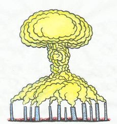 ??? 蘑菇云,戰(zhàn)爭和死亡的代名詞,人們說起它無不避若蛇蝎,然而可笑的是,人類對于空氣污染,全球變暖,這顆無形的原子彈卻是重視不足,任它漸漸發(fā)揮出威力。須知,戰(zhàn)爭只能毀滅一個國家或者民族,但是污染地球,導(dǎo)致的是就是全人類的滅亡。