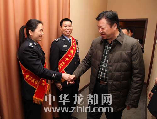 ????報(bào)告會前,周口市委常委、政法委書記朱家臣,副市長劉國連,市政府黨組成員、公安局長姚天民親切會見了報(bào)告團(tuán)成員并合影留念。