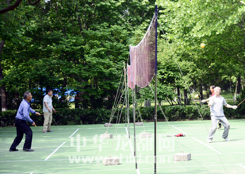 在融輝城老年人健身中心,老人們揮拍激戰(zhàn)。 (記者 沈湛 攝)