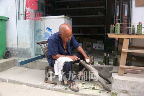 寫滿滄桑的臉上,全神貫注,有力的雙手,在竹筒上一刀刀刻著對生活的美好追求!