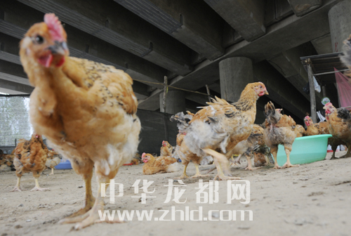 與大慶路橋下相比,周口大道橋下更有“經(jīng)濟(jì)味”,幾千只雞在橋下撒歡地跑著、追逐著、鳴唱著……好一番生活氣息。再等一段時(shí)間,這些雞就能走上人們的餐桌換成人民幣。