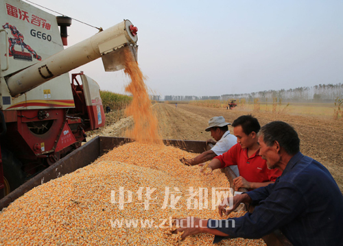???? 圖① 9月27日,扶溝縣大李莊鄉(xiāng)馮老村農(nóng)民正在收玉米。該縣各鄉(xiāng)鎮(zhèn)群眾抓住天氣晴好的有利時機,組織協(xié)調(diào)機械收秋,做到成熟一塊收割一塊,確保顆粒歸倉。黃金峰 攝????