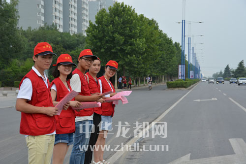 ????7月9日,周口市公安局文昌分局組織30名青年志愿者走上街頭,開展各項(xiàng)志愿服務(wù)活動(dòng),助力省級(jí)文明城市創(chuàng)建工作。圖為青年志愿者走上街頭發(fā)放宣傳頁,宣傳交通法規(guī)。