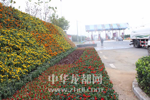 商周高速路口擺放的大型花壇