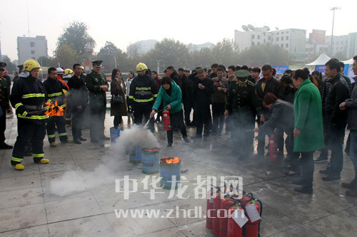市民在五一文化廣場(chǎng)學(xué)習(xí)消防知識(shí)