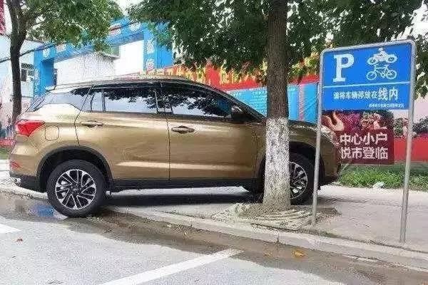 ????除了常見的半側(cè)車輪騎馬路牙子外,上圖中這種前后車輪騎馬路牙子的停車方式也不可取。
