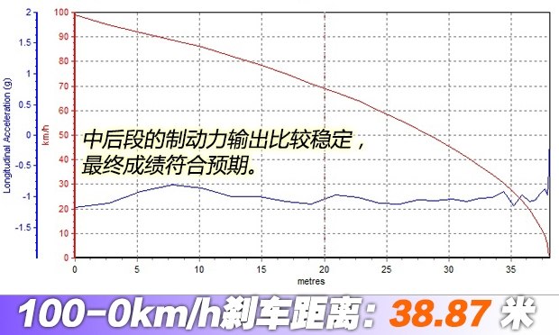 ????全力制動(dòng)時(shí)車身有點(diǎn)頭的現(xiàn)象,但車身總體保持穩(wěn)定,最終成績(jī)?yōu)?8.87米,表現(xiàn)符合預(yù)期。這個(gè)成績(jī)?cè)谄囍业脑u(píng)價(jià)體系中,也屬于優(yōu)秀水平。