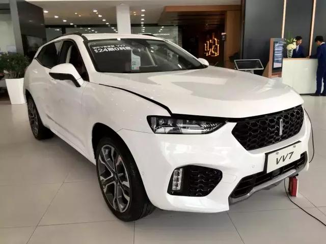 VV7車系下分VV7cVV7s兩款車,VV7s細節(jié)設計上更為運動,配置更高一些,VV7c暫時不賣了,問銷售也不知道為何,展車也都是VV7s,白色是頂配,因為太火爆很難拍到周圍沒有人的時候。