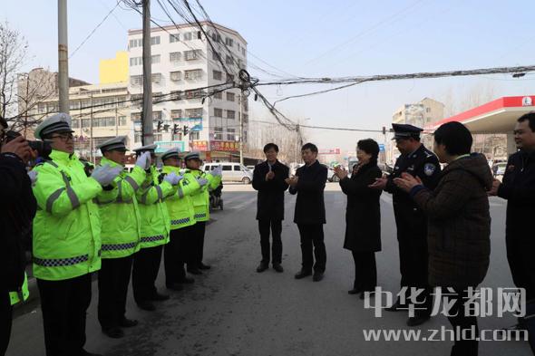一路慰問一路播撒黨的溫暖。在鄲城縣城科技大道與人民路口,趙素萍一行專門下車慰問了一線交警?!袄洳焕洌啃』镒?。這衣服暖和不?”趙素萍用手摸了摸一位交警的值勤服問?!安焕洌@是俺縣里才配發(fā)的保暖服,防雪防風防雨。再說了,省領導來慰問,俺心里更暖和?!苯痪臋C靈回答,把大家逗得哈哈大笑。趙素萍說:“你們不畏嚴寒的辛勤付出保障了城市的暢通,我代表省委、省政府向全縣民警同志們致以節(jié)日的問候,并通過你們向你們的家人表示節(jié)日的祝福,祝愿大家新春愉快,闔家幸福,身體健康?!?/p>