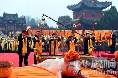 本報(bào)訊 (記者 侯俊豫 李莉) 3月18日,農(nóng)歷二月初二,巍巍羲陵,古柏新枝,2018(戊戌)年公祭中華人文始祖太昊伏羲氏大典隆重舉行。來自海內(nèi)外的千余名羲皇子孫匯聚太昊陵統(tǒng)天殿前,共祭中華人文始祖太昊伏羲氏,祈愿華夏繁榮昌盛,共祝世界和平和諧。