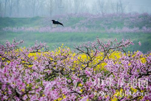 潁河、沙河、賈魯河三條主干河流貫穿西華全境,甘甜的潁河水滋潤(rùn)了黃橋鄉(xiāng)潁河兩岸萬畝桃園,每年3月底至4月上旬,潁河兩岸桃花盛開,與樹下金燦燦的油菜花、綠油油的麥苗相映成畫,紅、黃、綠構(gòu)成了五彩斑斕的人間仙景。置身其中,花香沁人心脾,色彩絢麗奪目,景色美不勝收,猶如身處陶淵明筆下的“世外桃源”。