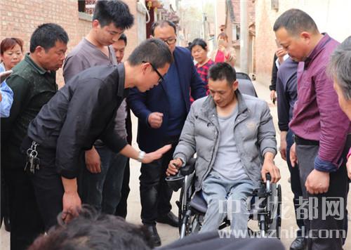 中華龍都網(wǎng)訊(周口報業(yè)全媒體記者 李瑞才 通訊員劉傳保 胡洪濤圖文)前不久,本網(wǎng)曾報道了鹿邑太清宮鎮(zhèn)男子王成濤因從10樓墜落致癱瘓,自愿捐出器官救別人的事跡,看到報道后,許多網(wǎng)友紛紛稱贊王成濤。為了方便王成濤活動,近日,在鹿邑縣委宣傳部、縣文明辦的倡導和參與組織下,鹿邑星宇電子商務(wù)有限公司的總經(jīng)理王朝華、郭彥山,副總經(jīng)理孫永建等人來到了太清宮鎮(zhèn)楊橋村,專門為王成濤送來他們在網(wǎng)上訂購的電動輪椅。