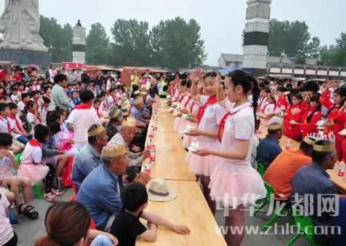 中華龍都網(wǎng)訊(周口報(bào)業(yè)全媒體記者 李瑞才 通訊員 胡洪濤 劉傳保/文圖)5月18日,鹿邑縣太清宮老子文化廣場(chǎng)內(nèi)歡聲笑語(yǔ)、歌舞飛揚(yáng),處處洋溢著歡樂(lè)祥和氣氛,來(lái)自鹿邑縣太清宮鎮(zhèn)一所小學(xué)的500多名師生在這里為太清敬老院的40多位老人操辦集體生日,用精彩的演出恭祝他們生日快樂(lè)!