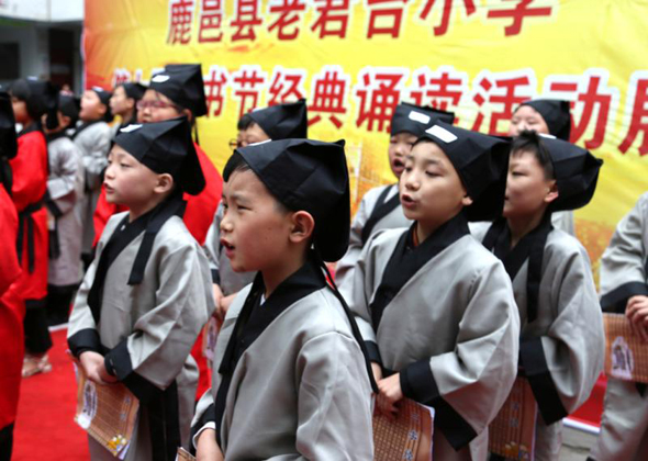 中華龍都網(wǎng)訊(周口報(bào)業(yè)全媒體記者 李瑞才 通訊員 孫廣合 胡洪濤 文/圖)5月21日,鹿邑縣老君臺(tái)小學(xué)舉辦“圣賢儒雅 經(jīng)典誦讀”為主題的第七屆讀書節(jié)誦讀展演活動(dòng),全校1000多名師生及家長參加誦讀展演活動(dòng)。