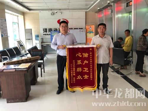 中華龍都網訊(周口報業(yè)全媒體記者 付永奇 通訊員 高少輝)5月24日上午,商水縣化河鄉(xiāng)村民史學習和村支書一同來到商水農商銀行化河支行,為該支行送來一面“儲戶衛(wèi)士 心系群眾”的榮譽錦旗,感謝該支行幫其找到丟失的現金。