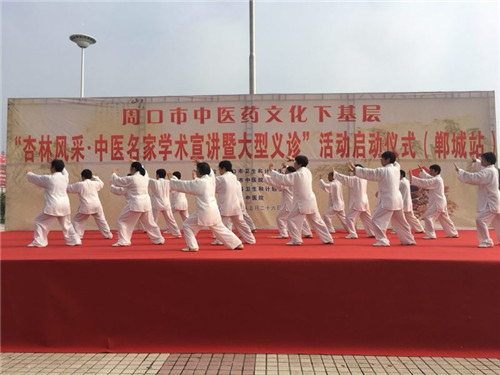 隨后,鄲城太極表演隊(duì)又為大家?guī)?lái)太極拳、太極劍等中醫(yī)養(yǎng)生保健操表演,精彩的表演贏得了現(xiàn)場(chǎng)群眾的陣陣喝彩。群眾的高度關(guān)注和積極參與,展現(xiàn)了鄲城人民重視中醫(yī)文化、注重養(yǎng)生保健的精神風(fēng)貌。