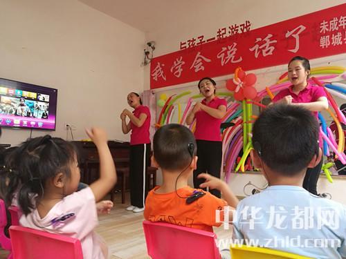 家長(zhǎng)如此開(kāi)朗,孩子們的世界肯定會(huì)更加陽(yáng)光。記者隨著鄲城縣殘聯(lián)理事長(zhǎng)楊瑞林和聾兒語(yǔ)訓(xùn)中心主任邵莉娜來(lái)到了二樓聾兒語(yǔ)訓(xùn)學(xué)習(xí)班?!拔覍W(xué)會(huì)說(shuō)話了”,大愛(ài)至簡(jiǎn),教學(xué)班里僅此一句標(biāo)語(yǔ),墻上是一面鏡子,鏡子上貼滿了老師和孩子們一起做的彩氣球,旁邊是一架鋼琴,4位語(yǔ)訓(xùn)老師正在張著大口(說(shuō)話標(biāo)準(zhǔn)口形)、動(dòng)作夸張地給孩子上聽(tīng)力課,老師邊彈琴,邊做手指舞、跳少兒舞,孩子們慢慢聽(tīng)、慢慢模仿、慢慢張口咿呀跟著唱……