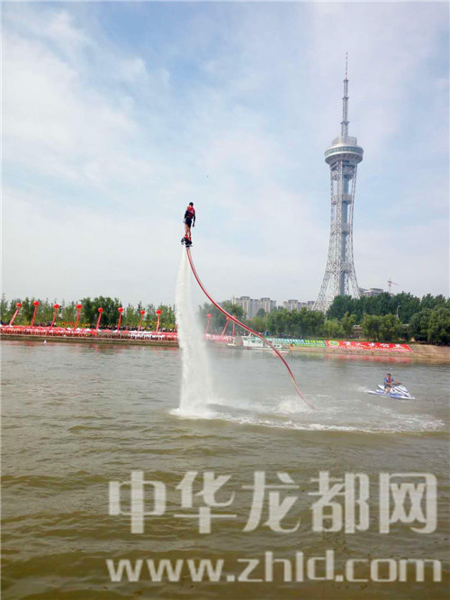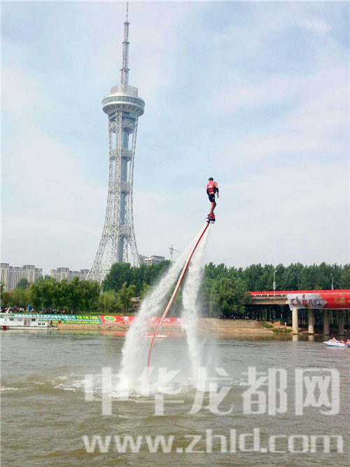 開幕式上,大賽組委會請來的“水上飛人“表演令觀眾驚嘆不已,只見一名運動員腳下踩著特制的噴水裝置,猶如鋼鐵俠一般,從水中騰空而起,時而在半空中靜止不動,時而從空中飛魚入水,連續(xù)做出前后空翻、空中回旋、蛟龍出水等各種華麗特技,令觀眾尖叫雀躍。期間,水上兩艘快速疾飛的船模表演,以及空中翻飛自若的航模表演,都給觀眾帶來了不一樣的視覺感受。