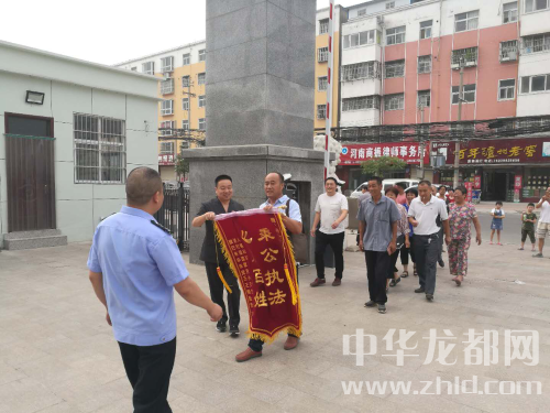 中華龍都網(wǎng)訊 (周口報(bào)業(yè)全媒體記者 陳永團(tuán) 通訊員 智艷威 戚娟娟)7月12日上午,家住商水縣巴村鎮(zhèn)的九名村民,將一面標(biāo)著“秉公執(zhí)法,心系百姓”的錦旗送到商水縣人民法院執(zhí)行局,以感謝庭長苑慶宏在執(zhí)行中公正高效的司法行為,并對其在執(zhí)行案件中情系百姓的工作態(tài)度給予高度贊揚(yáng)。