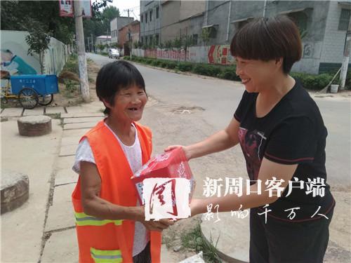 上午10時許,欣中基清潔公司經(jīng)理張志宏來到邵寨行政村??吹铰访娓筛蓛魞簦芨吲d。除了例行巡視,張志宏此行還有一項任務(wù):向每位保潔員發(fā)放一件飲料?!疤鞖獬掷m(xù)高溫,保潔員們露天辛勤勞動,給村民們創(chuàng)造了良好的生活環(huán)境。因此,公司決定開展慰問活動。”接過飲料,邵天錄等6名保潔員滿臉笑容地連聲道謝。