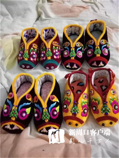 同是來(lái)自汲水鄉(xiāng)楊古寺村的55歲于蘭榮剛剛甩掉貧困戶的帽子。她的創(chuàng)業(yè)動(dòng)力來(lái)自2017年底縣委書(shū)記羅文閣的一次偶然家訪。2017年12月份,羅文閣走訪全縣貧困村時(shí)隨機(jī)抽訪貧困戶來(lái)到了于蘭榮家中,看到于蘭榮有一手做貓頭鞋、女士仿古布鞋、嬰兒棉衣的手藝,而且做得很精致,羅文閣就鼓勵(lì)她這是即將失傳的民間手工藝品,要把這個(gè)手藝?yán)^續(xù)傳承和發(fā)揚(yáng)下去。