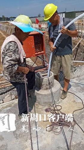 賈魯嘉苑項(xiàng)目L地塊施工現(xiàn)場(chǎng),建筑工人正在對(duì)降水井進(jìn)行抽水