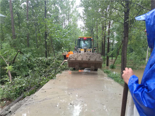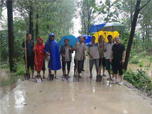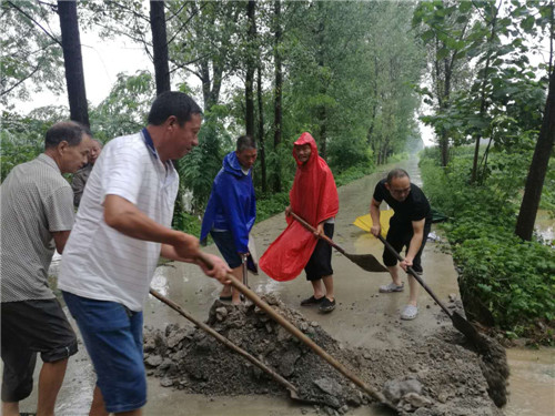 8月19日早7點,陳留張駐村工作隊長李成功、村副主任張建靈發(fā)現(xiàn)險情后,便開始緊急會商,提出科學搶修方案。最后確定,調(diào)用本村的鏟車,利用本村商砼站的石料,組織本村的村民,迅速趕赴事發(fā)地點開展搶修工作。