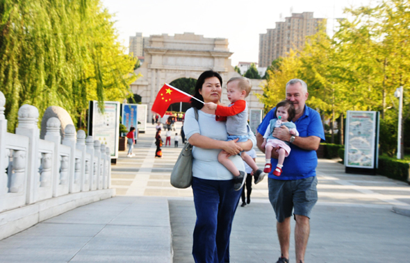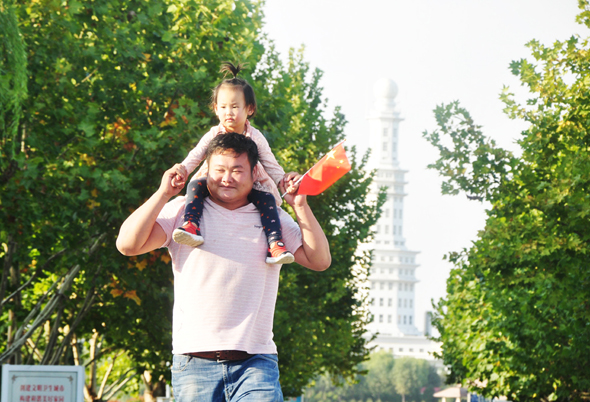 “看著滿眼的國旗紅,心情特別激動,真心為祖國的發(fā)展與強大感到驕傲和自豪。”10月1日上午,市民王先生帶著家人來到周口公園,感受濃濃的國慶氛圍。