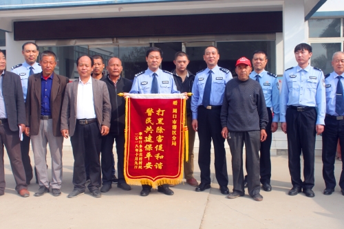 10月9日上午,李埠口鄉(xiāng)孫莊村數(shù)十名群眾代表,來(lái)到周口市公安局港區(qū)分局,將寫有“打黑除害促和諧,警民共建保平安”的錦旗和感謝信送到何學(xué)民政委的手中,村民代表對(duì)分局鐵腕鏟除該村“村霸”維護(hù)孫莊村和諧穩(wěn)定表示由衷的感謝。