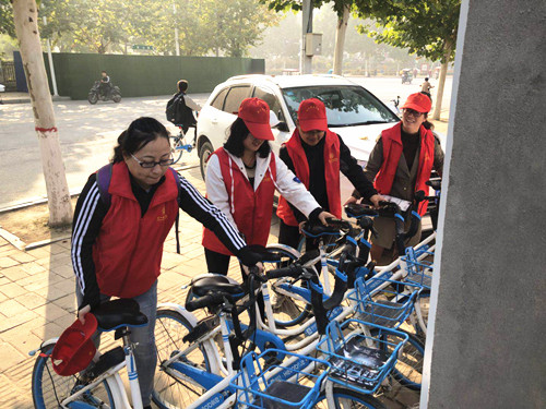 為扎實推進“五城聯(lián)創(chuàng)”工作深入開展,調(diào)動廣大市民積極參與“五城聯(lián)創(chuàng)”工作的積極性、主動性,我市在中心城區(qū)開展了為期一個月的“灑掃庭院迎賓客,文明創(chuàng)建我助力”活動。圖①為中國人民銀行職工在清理小廣告。圖②為中國人壽職工在清掃路面。圖③為市公路局職工在清理綠化帶。圖④為周口師范學(xué)院師生在整理共享單車。