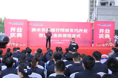 10月24日,商水農商銀行舉行陽城支行開業(yè)暨 普惠金融授信儀式。該行行長李楠及中層以上人員參加儀式。縣金融辦負責人姜建中 、縣人民銀行行長徐明、銀監(jiān)辦主任張明瑭,部分客戶代表應邀出席儀式,儀式由姜建中主持。