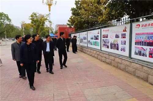 11月14日下午,鄲城縣委書記羅文閣等縣四個(gè)班子領(lǐng)導(dǎo)一行到縣世紀(jì)廣場共同觀看《決戰(zhàn)決勝---鄲城縣脫貧攻堅(jiān)工作攝影》展。
