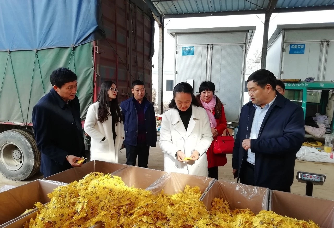 然而,放到一年前,種金絲皇菊,誰都沒這個底氣。去年10月底,張店村黨支部書記張琳,發(fā)現(xiàn)處在村里的烤煙站突然熱鬧起來。一問,方才知道,宋河鎮(zhèn)菊鼎合作社法人周安營在此烘制金絲皇菊。細(xì)聊之后,張琳心動了,張店村土地肥沃,適宜種植;周安營種植多年,可以聘請來當(dāng)技術(shù)指導(dǎo);村里有2000多村民,完全可以滿足菊花從育苗、定植、田間管理、采摘等大量用工需求;現(xiàn)成的烤煙設(shè)備可以一舉兩得……張琳隨即召開支部會、村民代表會,“他說得恁好,他咋不種?”“干部的話只能信三分?!辈辉?,因村“兩委”過去5年多的“軟弱渙散”,村民們更多選擇了觀望。