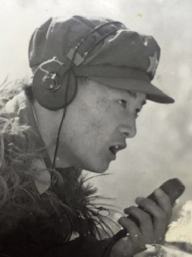 這時候,反撲的敵人越來越近了,蔣慶泉向指揮部的兩名話務(wù)戰(zhàn)士谷德泰和陸洪坤報告了這一情況??粗绯彼惚平臄橙耍Y慶泉拼盡全力,沖著步話機嘶吼:“別廢話!向我所在的碉堡頂開炮!”。在陣地暗堡中,幸存的戰(zhàn)士緊緊圍在蔣慶泉身邊,以保護他向我炮兵指揮部通報目標的位置。