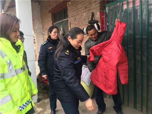 7日上午,該局派人將這些愛心棉衣一一送到困難戶手中。