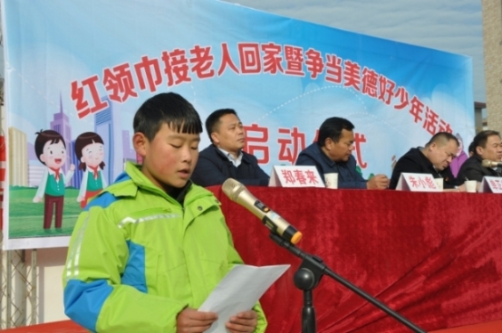 12月29日下午,在商水縣姚集鎮(zhèn)舉行的“紅領巾接老人回家暨爭當美德好少年”活動 啟動儀式上,姚集鎮(zhèn)盧廟小學六年級學生張吉慶用幼稚童音朗誦的《用愛接爺爺奶奶 回家》,感動了在場的來自各鄉(xiāng)鎮(zhèn)的數百名鄉(xiāng)村干部。“孩子講的好,我們一定配合 鄉(xiāng)政府把獨居老人戶清零工作做好做實,讓老人們年年過暖冬?!睖f鄉(xiāng)中心校長戚 二中會后告訴記者。