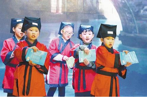國(guó)學(xué)經(jīng)典是國(guó)家和民族的靈魂,凝聚著中華民族的智慧,展示著中華民族的精神。周口星源國(guó)際學(xué)校在教學(xué)過(guò)程中注重培養(yǎng)學(xué)生對(duì)國(guó)學(xué)經(jīng)典文化的興趣,讓學(xué)生感悟國(guó)學(xué)經(jīng)典的傳統(tǒng)文化魅力,形成人人自覺(jué)“誦經(jīng)典、悟經(jīng)典、行經(jīng)典”的良好氛圍,激發(fā)青少年繼承和發(fā)揚(yáng)優(yōu)秀民族文化的信心。圖為該校學(xué)生在元旦晚會(huì)上進(jìn)行國(guó)學(xué)表演。 記者 劉俊濤 攝
