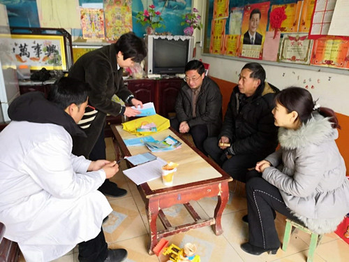 鄲城縣第二醫(yī)療健康服務(wù)集團(tuán)副院長(zhǎng)王景春、醫(yī)共體辦公室主任李慧滿與村醫(yī)入戶督導(dǎo)家庭醫(yī)生簽約服務(wù)情況。在醫(yī)務(wù)人員的引導(dǎo)下,村民們有序地排著隊(duì),等待醫(yī)生們對(duì)其問(wèn)診。