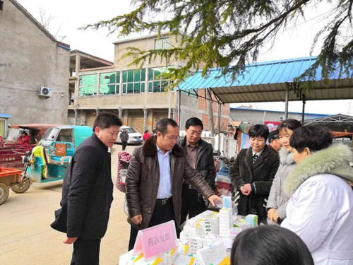 鄲城縣第二醫(yī)療健康服務(wù)集團(tuán)副院長(zhǎng)王海超、副院長(zhǎng)王景春、錢店衛(wèi)生院院長(zhǎng)李西鋒赴義診現(xiàn)場(chǎng)督導(dǎo)
