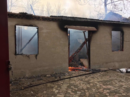 火災發(fā)生后,張振偉迅速到達現場開展緊急處置工作,他不顧熊熊烈火、嗆鼻的濃煙以及灼熱的氣浪,為了最大程度保護村民的人身和財產安全,冒險進入現場。