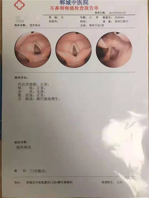鄲城縣中醫(yī)院為進(jìn)一步提高耳鼻喉臨床診療水平,更好地為廣大耳鼻喉患者服務(wù)。近日,新引進(jìn)的纖維喉鏡系統(tǒng)(奧林巴斯T3)及工作站等設(shè)備正式調(diào)試完成,并投入使用。3月13日,完成第一例病人診療報(bào)告打印。