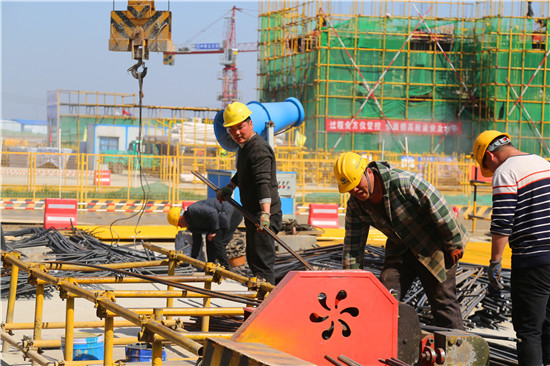 當(dāng)日上午,記者在施工現(xiàn)場(chǎng)看到,塔吊林立,機(jī)械轟鳴,運(yùn)輸車來來回回在現(xiàn)場(chǎng)穿梭,霧炮、噴淋設(shè)施配合作業(yè),工人們緊張有序的忙碌著,整個(gè)施工現(xiàn)場(chǎng)呈現(xiàn)出一派熱火朝天的景象。