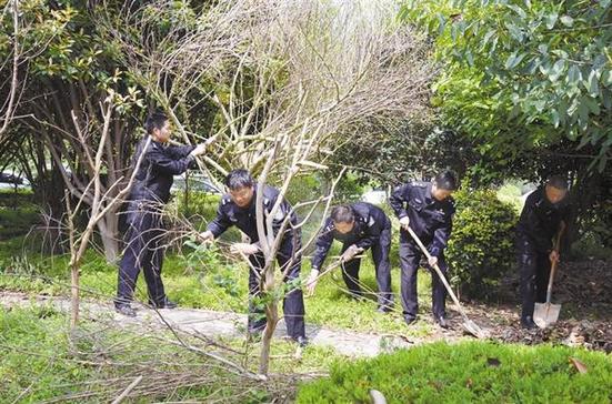 我市召開創(chuàng)建國家衛(wèi)生城市百日沖刺動員大會以來,市公安局犯罪偵查支隊(duì)指揮室黨支部號召黨員民警從身邊做起、從小事做起、從點(diǎn)滴做起,以實(shí)際行動積極參與“創(chuàng)衛(wèi)”工作。圖為4月28日上午,民警在營區(qū)修剪花木、清掃殘葉。記者 竇娜 攝