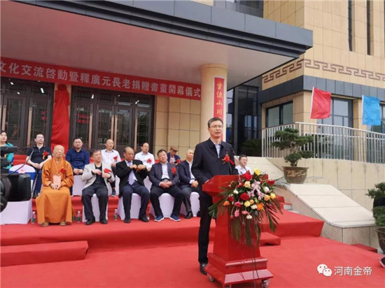 省文聯(lián)黨組書記王守國在開幕式上說,釋廣元長老不顧90多歲高齡,帶領50多名臺灣同胞,過??缃?,榮歸故鄉(xiāng),出席捐贈活動,這不僅匯融了釋廣元長老的“鄉(xiāng)愁”情節(jié),更是釋廣元長老不忘初心,反哺家鄉(xiāng)情懷的具體體現(xiàn)。希望越來越多的臺灣同胞蒞臨河南,感悟中原,融入中原,攜手并進砥礪前行共筑中國夢!