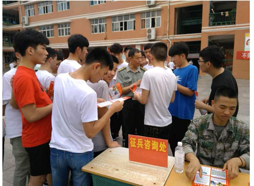 5月25日,淮陽縣征兵政策宣講團(tuán)進(jìn)校入班,對全縣六所高中學(xué)校開展宣講活動。效果明顯,當(dāng)場有參軍意向高學(xué)歷青年報名,人數(shù)成倍增長,周口軍分區(qū)副司令員薛振喜看到這一喜人的成果后說:“大學(xué)生征兵政策宣傳進(jìn)村入戶進(jìn)校園入班級這個做法好?!?/p>