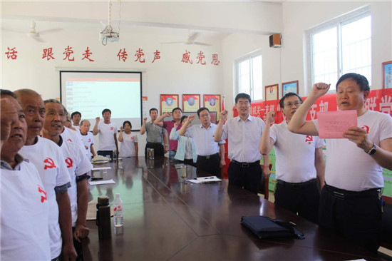 縣教體局黨組書(shū)記、局長(zhǎng)劉現(xiàn)營(yíng),城郊鄉(xiāng)鄉(xiāng)長(zhǎng)王忠,縣教體局機(jī)關(guān)一支部書(shū)記、主任科員張本寶,城郊鄉(xiāng)副鄉(xiāng)長(zhǎng)晉惠萍等帶領(lǐng)與會(huì)黨員舉起右拳,挺起胸膛,莊嚴(yán)宣誓,重溫了入黨誓詞。