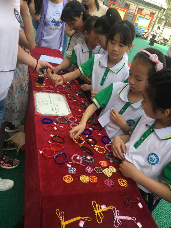 5月25日上午,沈丘縣中國結(jié)第七代傳承人李?;ㄗ哌M(jìn)槐店鎮(zhèn)回民小學(xué),和學(xué)校“中國結(jié)”手工編織興趣班的20名學(xué)生舉行“愛心義賣,情暖校園”主題活動。不到半小時(shí),100多件作品被搶購一空還預(yù)定了很多。據(jù)悉,這次義賣共得到1200余元,將全部捐給“槐店鎮(zhèn)中心學(xué)校教育基金”,用來資助該鎮(zhèn)經(jīng)濟(jì)困難師生、獎勵(lì)優(yōu)秀教師和學(xué)生、資助教育教研等重大活動項(xiàng)目。
