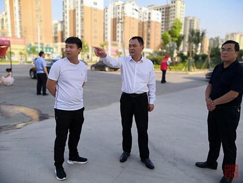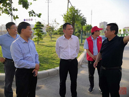 李全林一行沿著迎賓大道實地查看道路兩側(cè)綠化、市政工程基礎(chǔ)設施建設、商戶門前五包制度落實、各責任單位問題整改情況等,認真聽取相關(guān)負責人工作匯報,針對現(xiàn)場檢查中發(fā)現(xiàn)的問題,逐一分析研判,并提出具體整改意見。